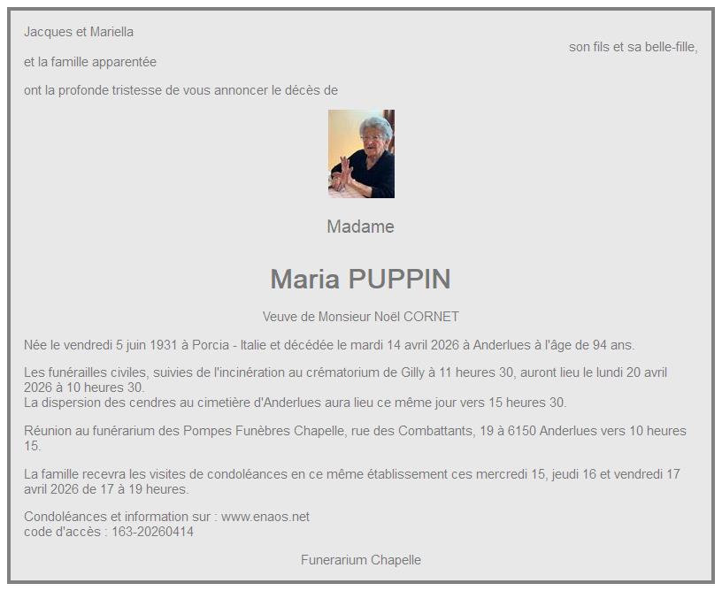 funérarium de Anderlues el lunes 20 abril a 10horas 30