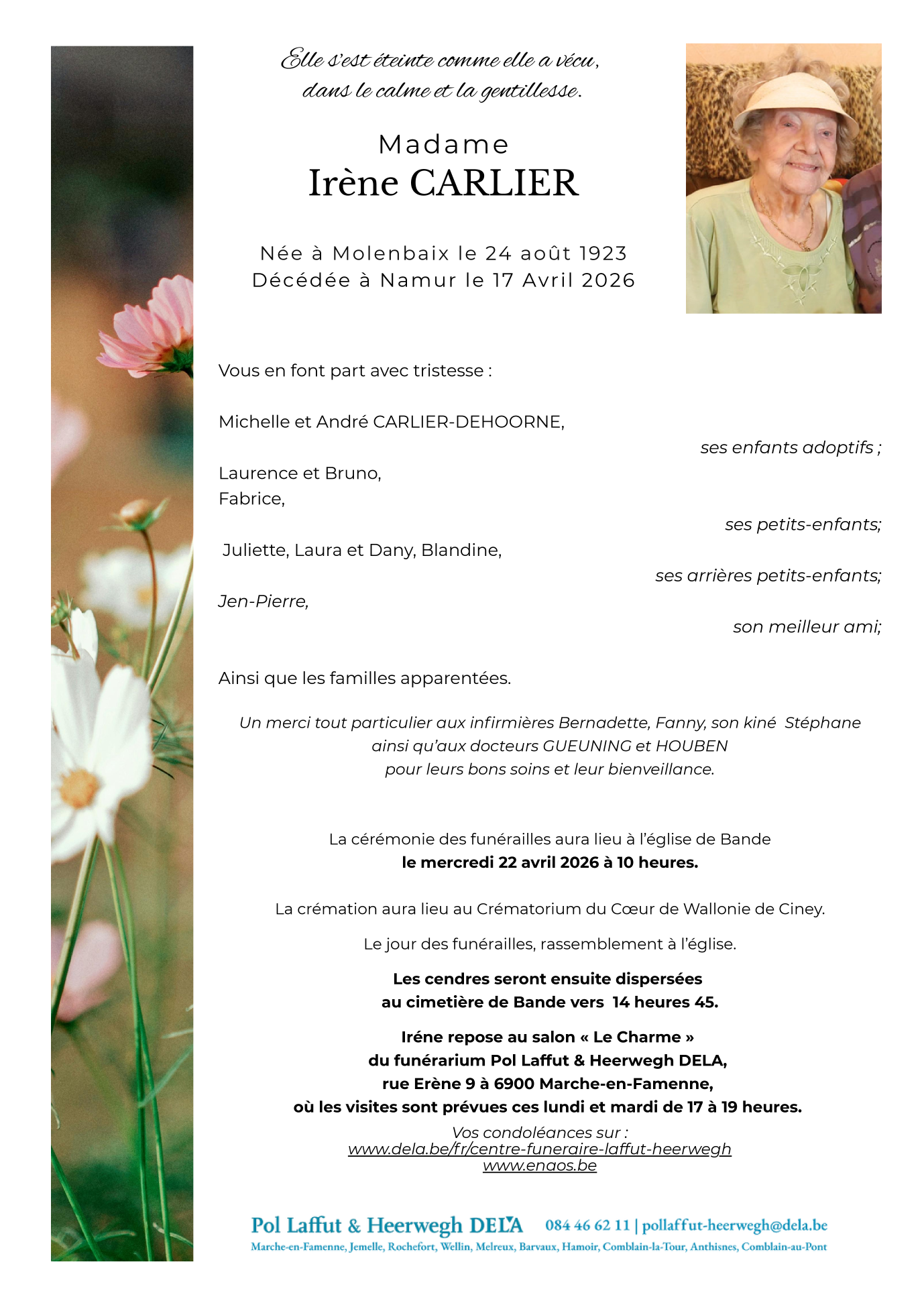 crématorium du Coeur de Wallonie el miércoles 22 abril a 11horas 45