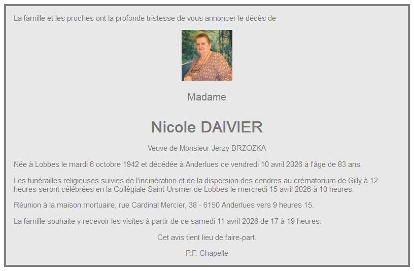 Avis de décès de Titre2[6] Nicole DAIVIER