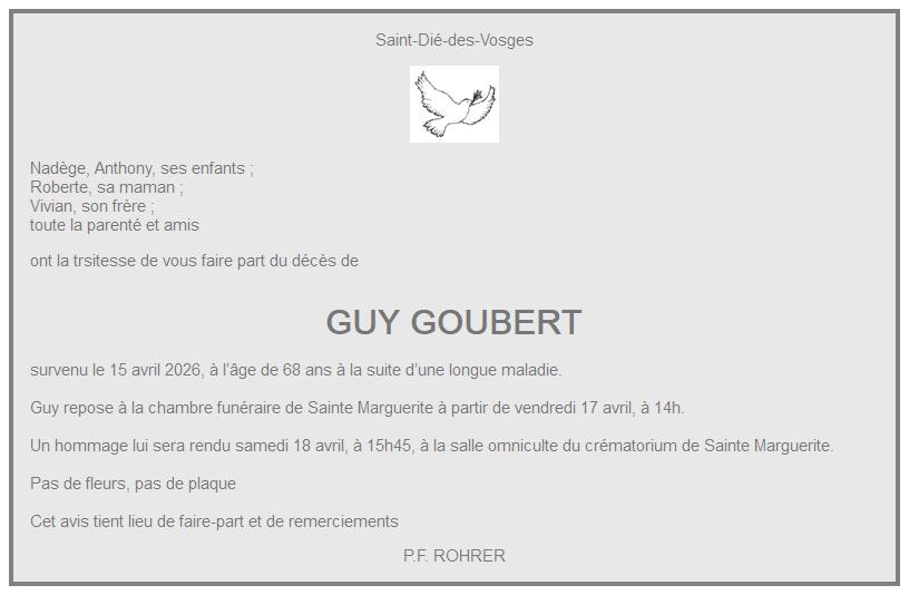 Overlijdensbericht van Meneer GUY GOUBERT
