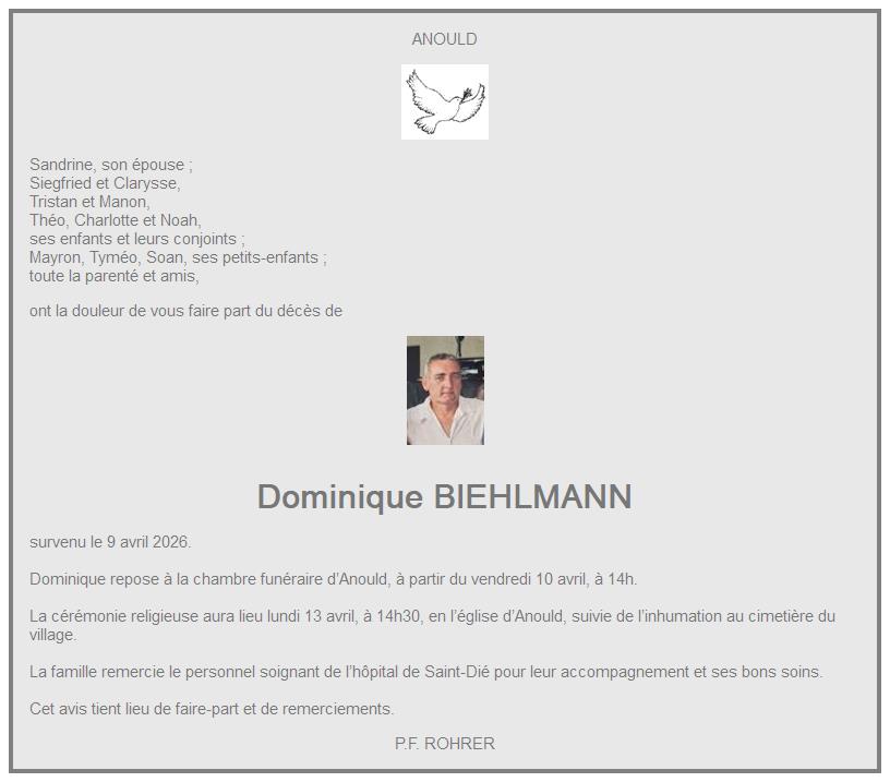 Avis de décès de Titre1[6] Dominique BIEHLMANN