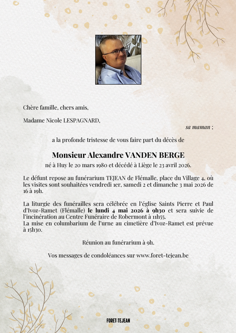 crématorium de Robermont el lunes 4 mayo a 11horas 55