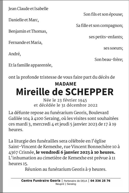 Fallecida en Seraing (4100, Bélgica) el sábado, 31 de diciembre de 2022 a la edad de 77 años