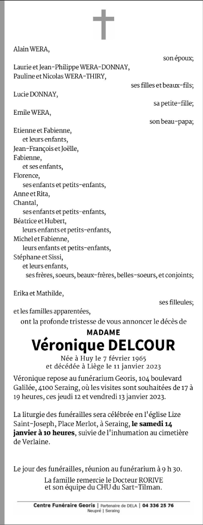 Fallecida en Liège (4000, Bélgica) el miércoles, 11 de enero de 2023 a la edad de 57 años
