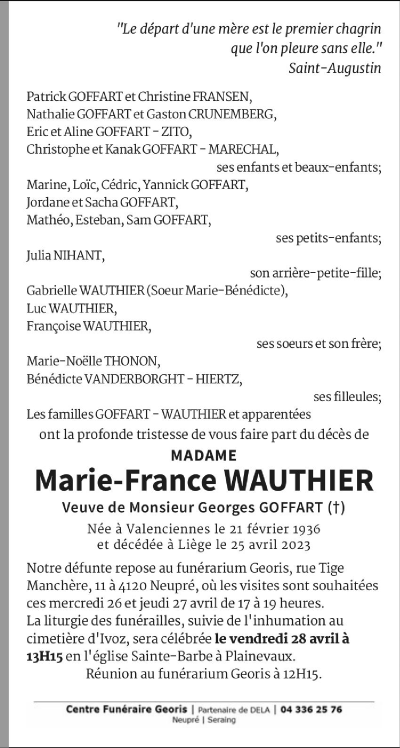 Fallecida en Chênée (4032, Bélgica) el martes, 25 de abril de 2023 a la edad de 87 años