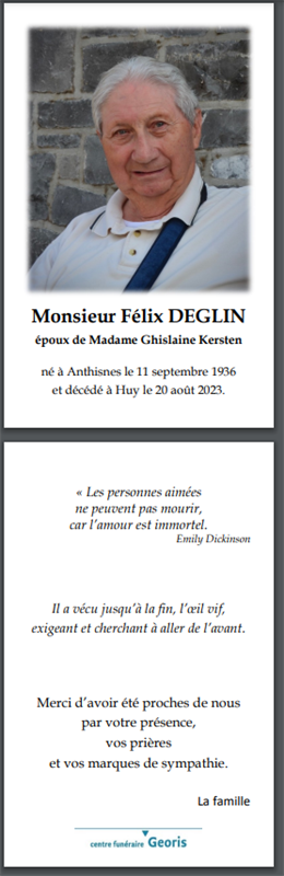 Fallecido en Huy (4500, Bélgica) el domingo, 20 de agosto de 2023 a la edad de 86 años