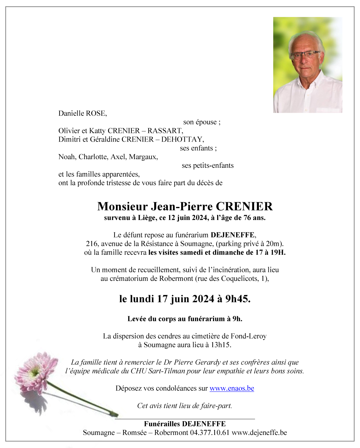 Fallecido en Liège (4000, Bélgica) el miércoles, 12 de junio de 2024 a la edad de 76 años