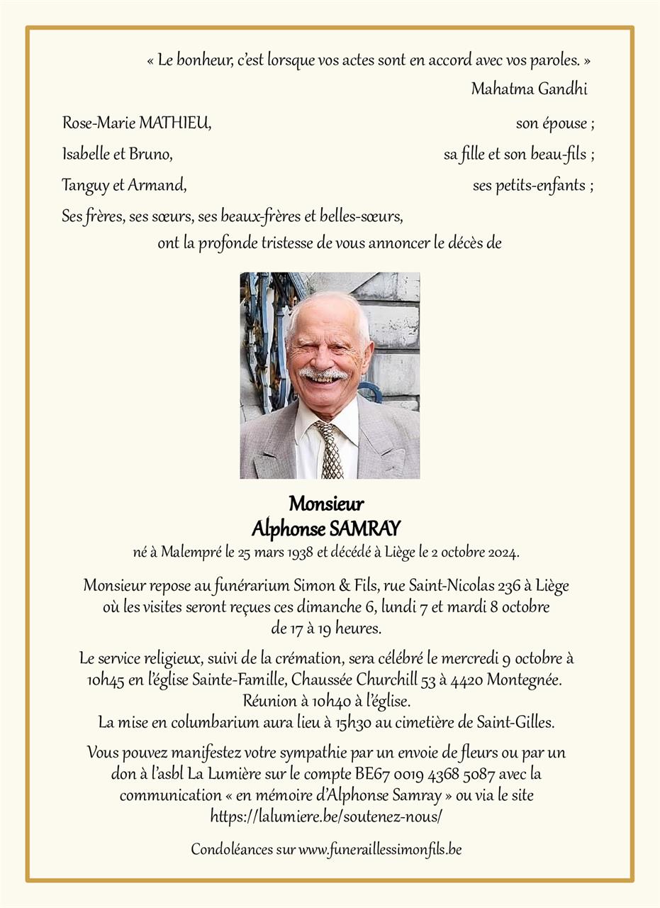 Fallecido en Liège (4000, Bélgica) el miércoles, 2 de octubre de 2024 a la edad de 86 años