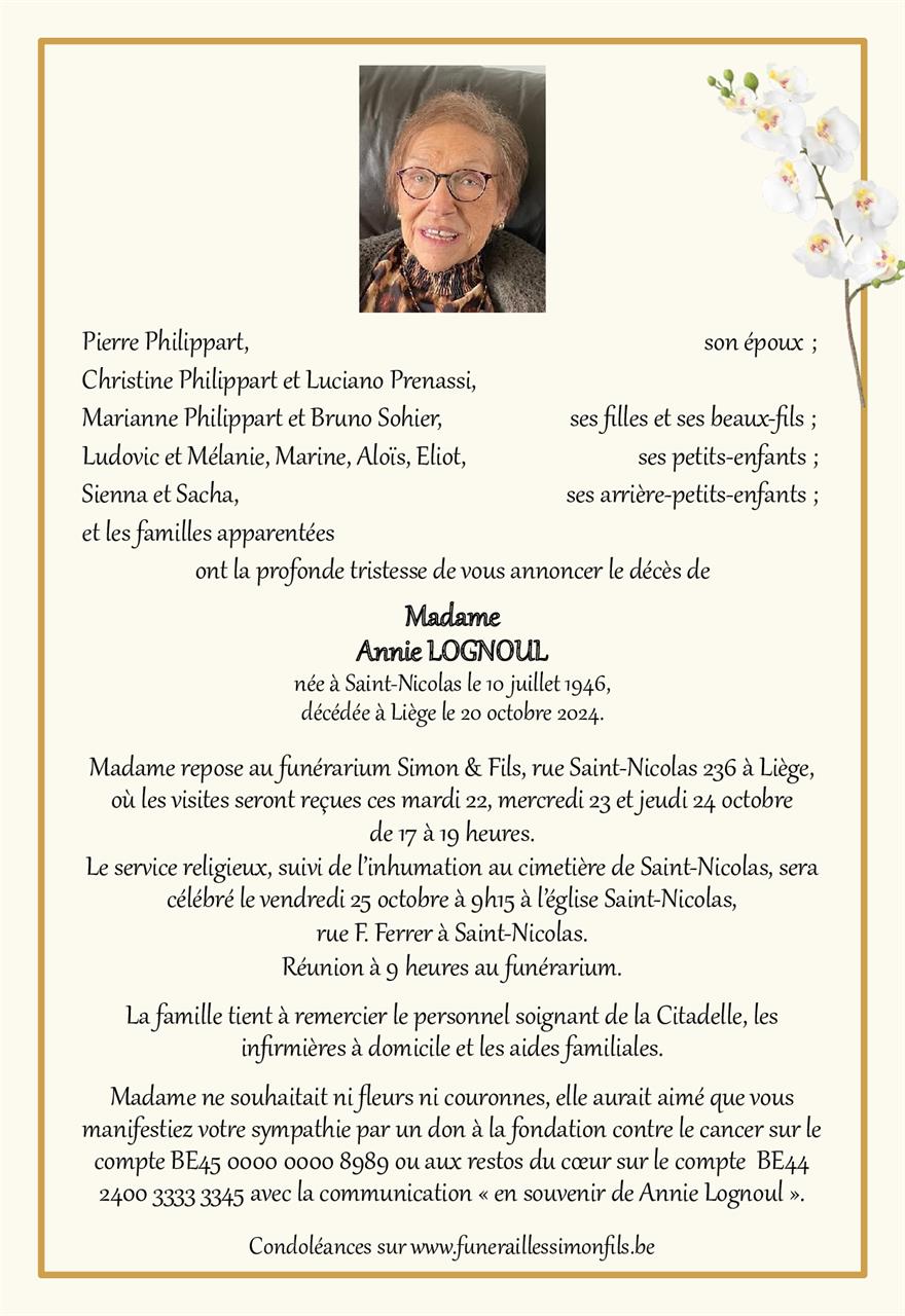 Fallecida en Liège (4000, Bélgica) el domingo, 20 de octubre de 2024 a la edad de 78 años
