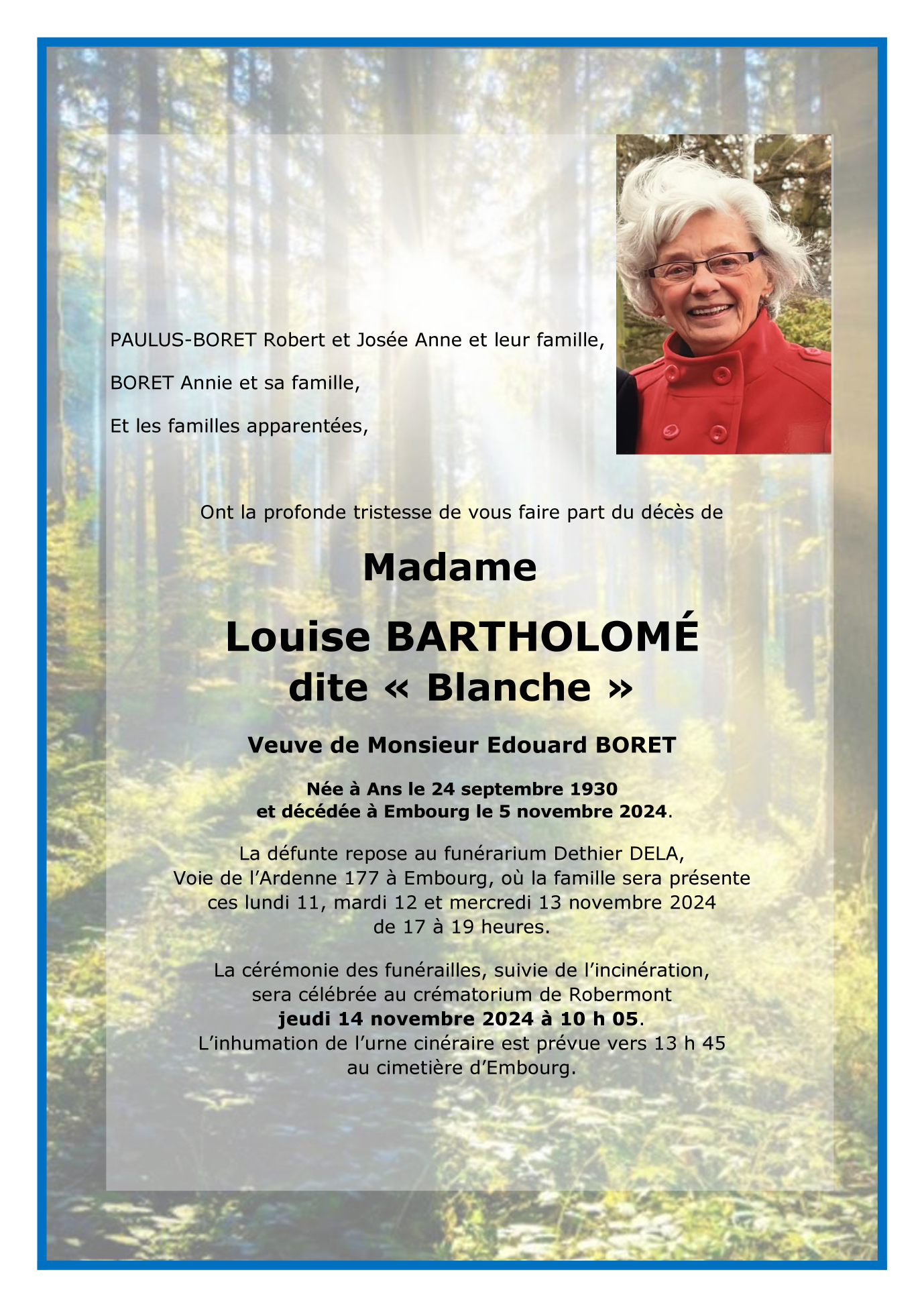 Madame Louise dite "Blanche" BARTHOLOMÉ