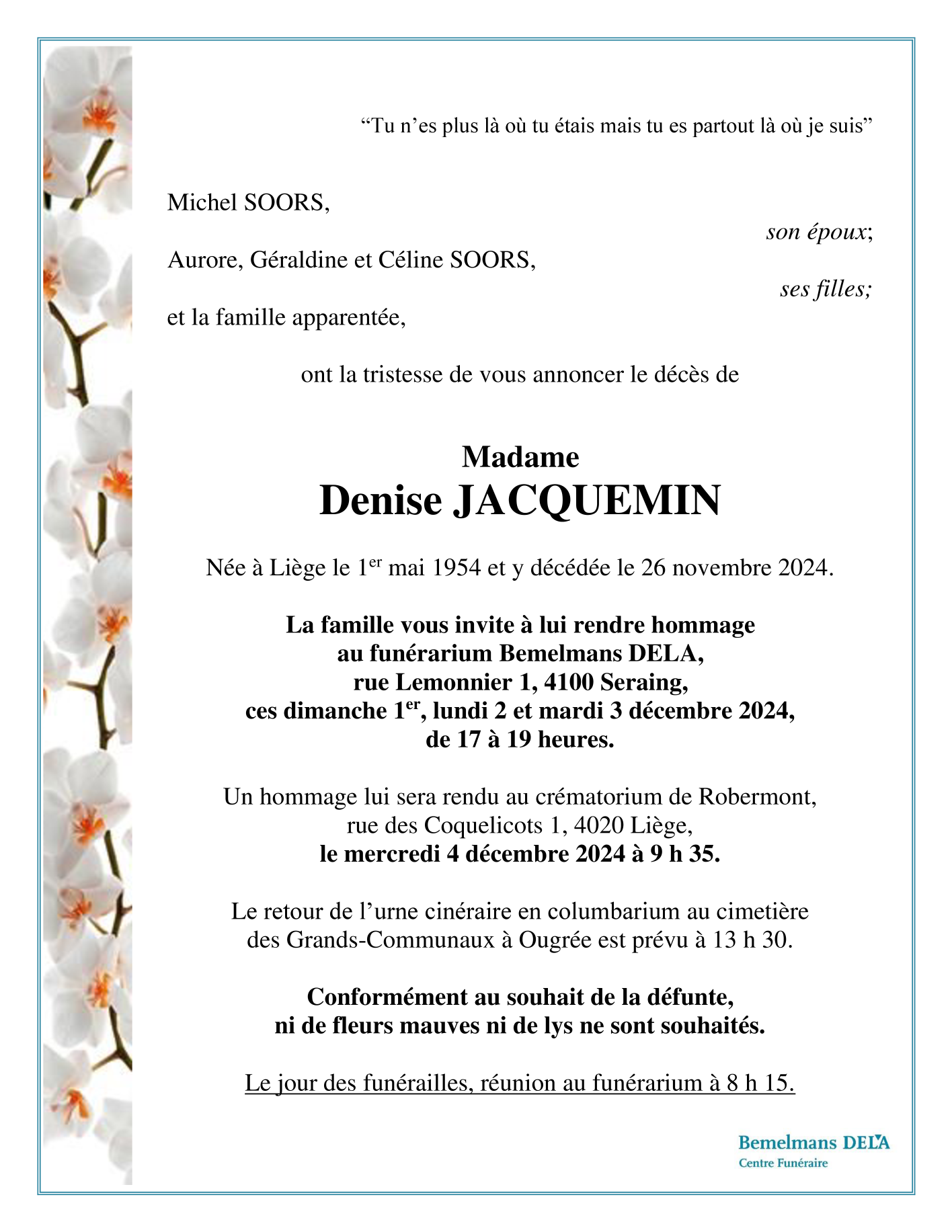 Esposa de Monsieur Michel SOORS