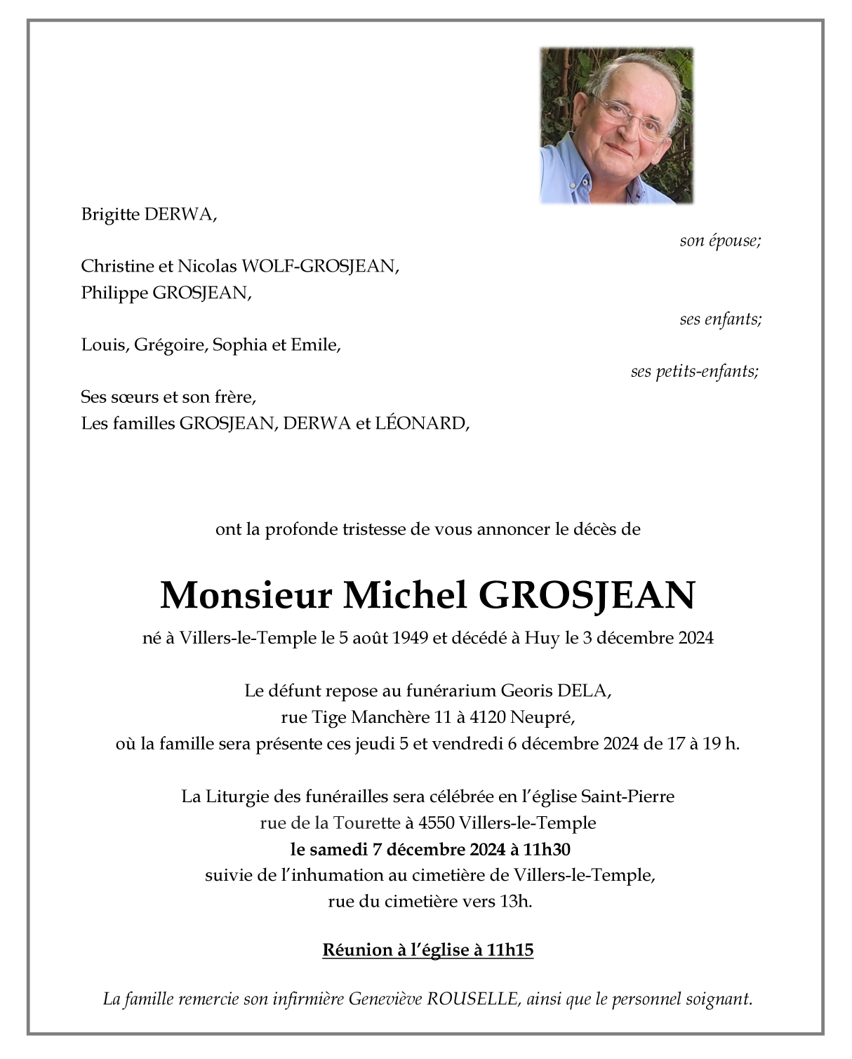 Fallecido en Huy (4500, Bélgica) el martes, 3 de diciembre de 2024 a la edad de 75 años