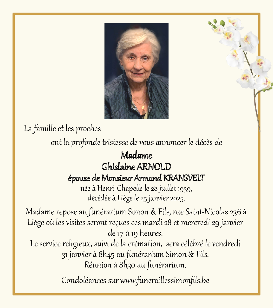 Fallecida en Liège (4000, Bélgica) el sábado, 25 de enero de 2025 a la edad de 85 años
