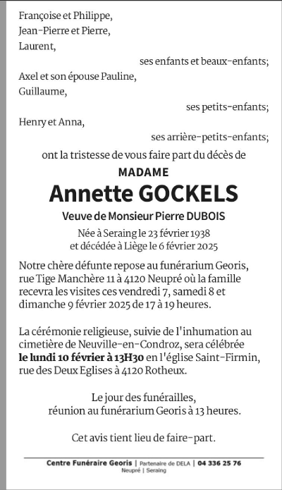 Overleden te Liège (4000, België) op donderdag 6 februari 2025 op 86-jarige leeftijd