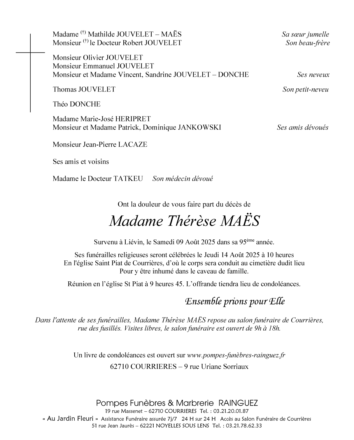Fallecida en Lievin (62800, Francia) el sábado, 9 de agosto de 2025 a la edad de 94 años