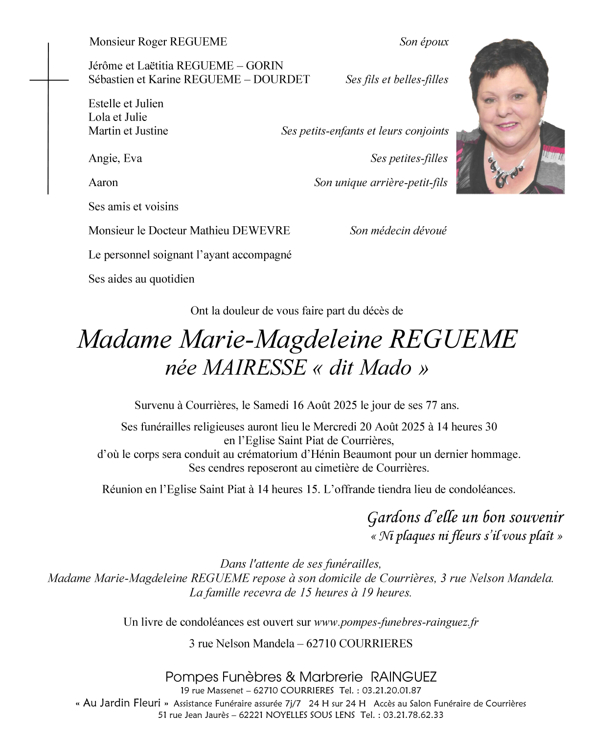 Madame Marie-Magdeleine REGUEME née MAIRESSE
