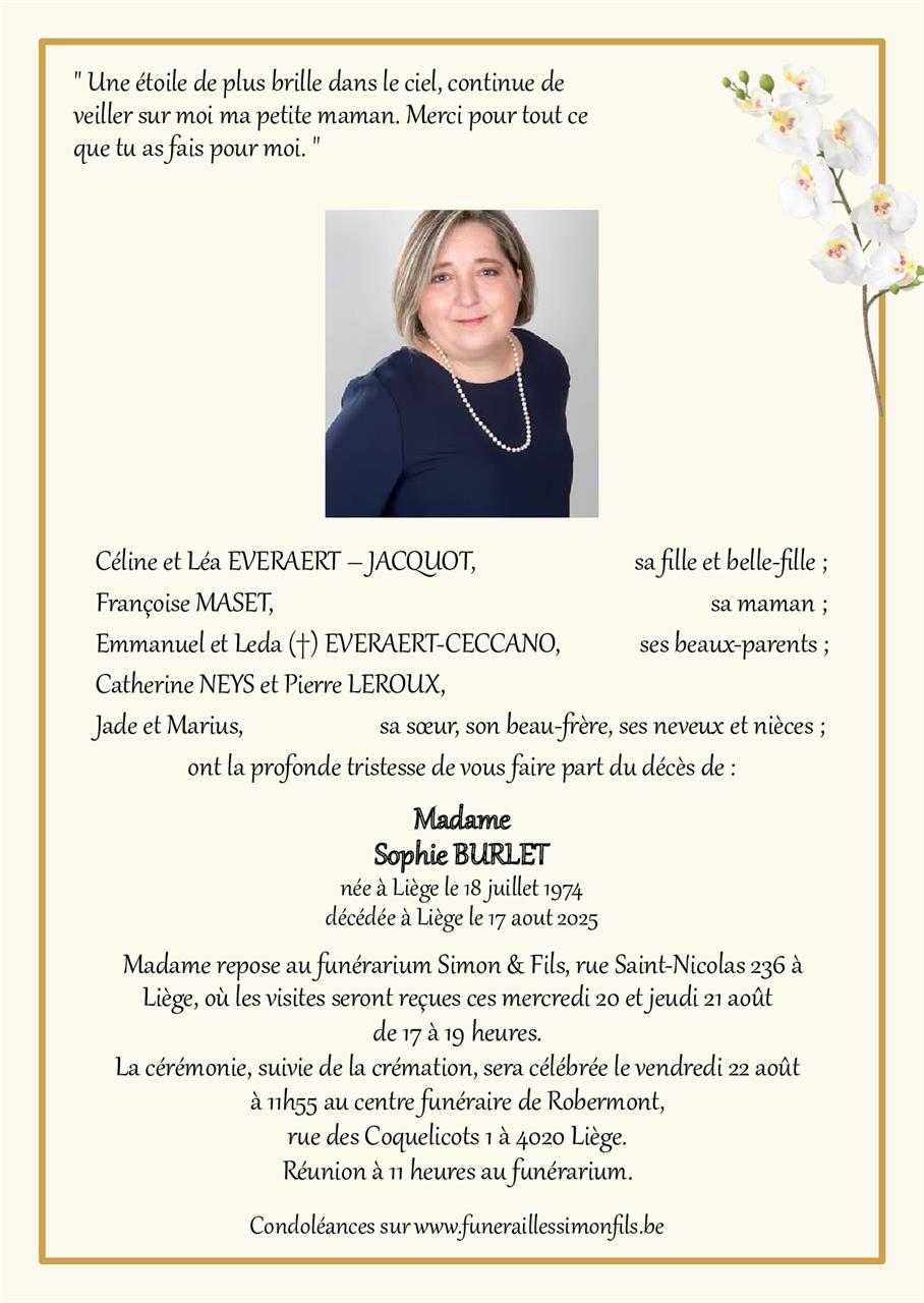 Fallecida en Liège (4000, Bélgica) el domingo, 17 de agosto de 2025 a la edad de 51 años