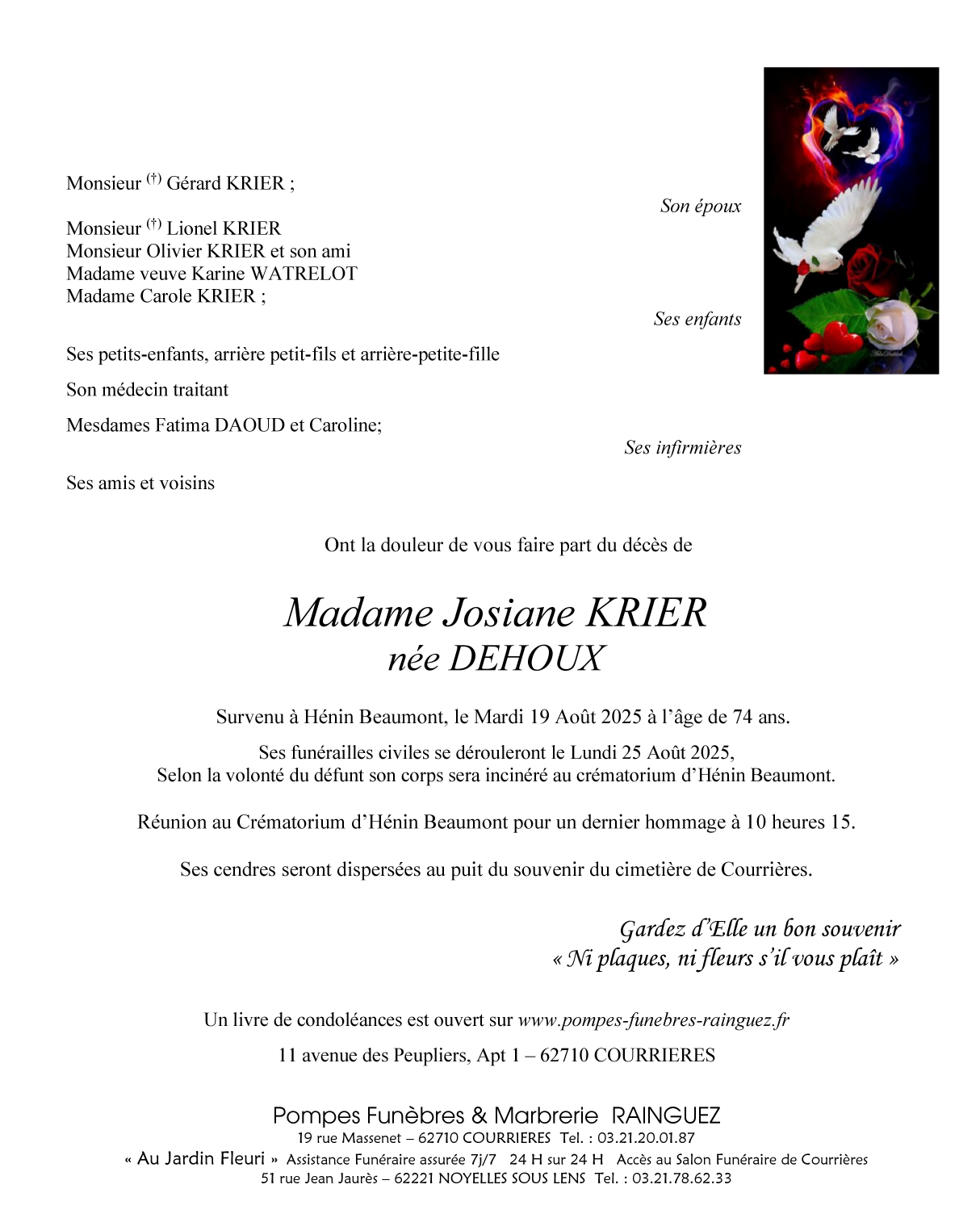 Madame Josiane KRIER née DEHOUX