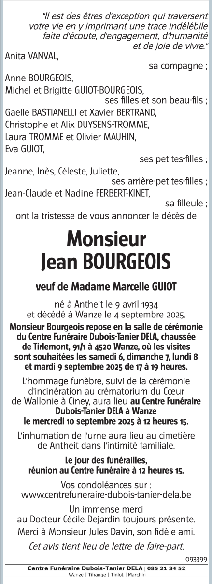 Fallecido en Wanze (4520, Bélgica) el jueves, 4 de septiembre de 2025 a la edad de 91 años