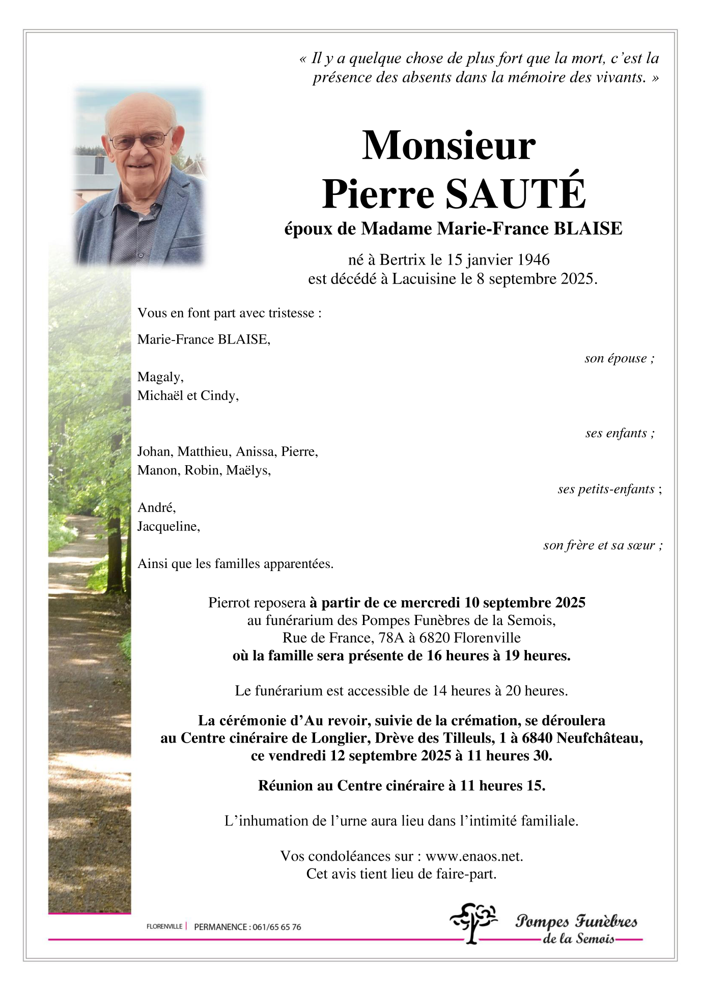 Fallecido en Lacuisine (6821, Bélgica) el lunes, 8 de septiembre de 2025 a la edad de 79 años