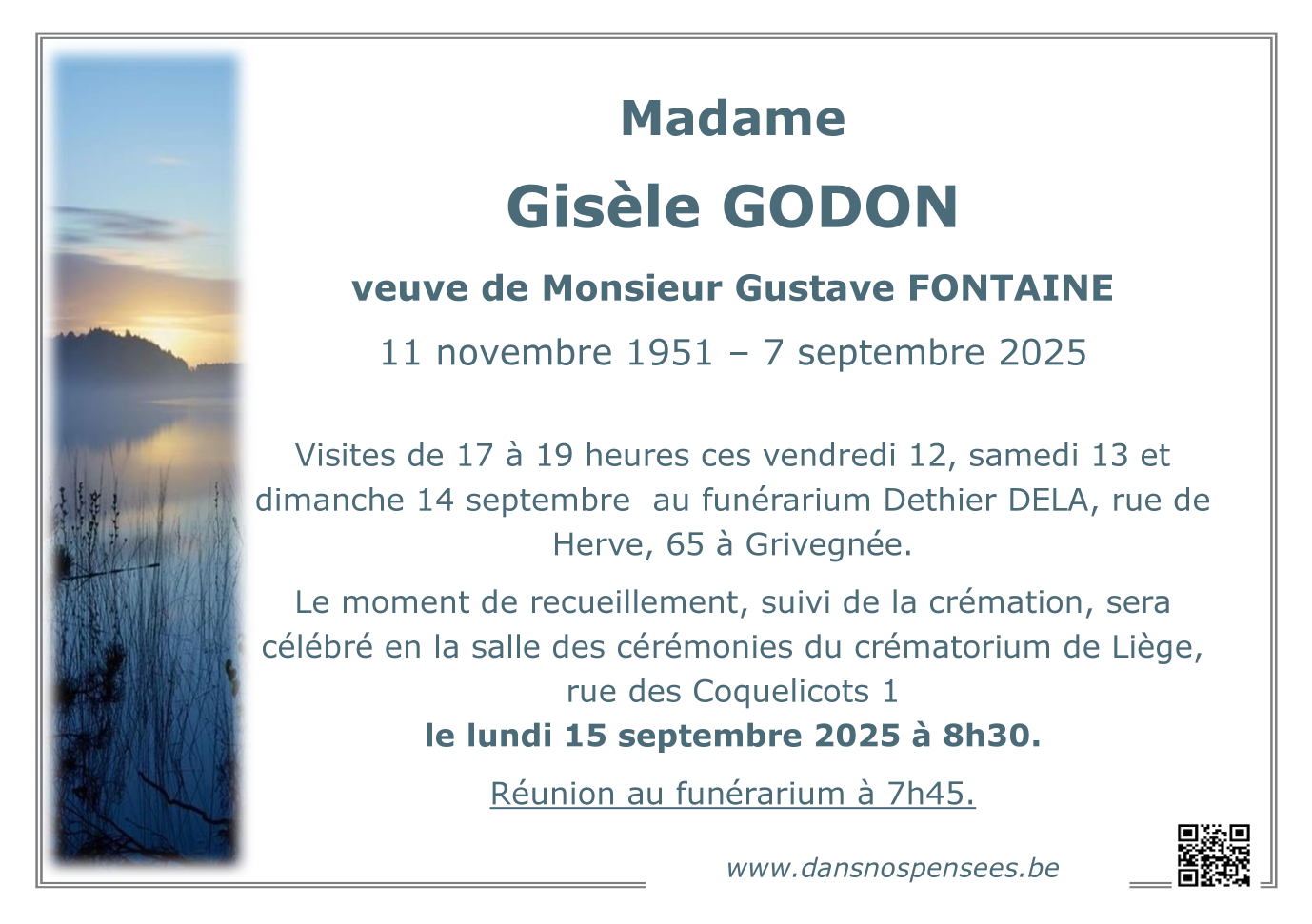 Fallecida en Liège (4020, Bélgica) el domingo, 7 de septiembre de 2025 a la edad de 73 años