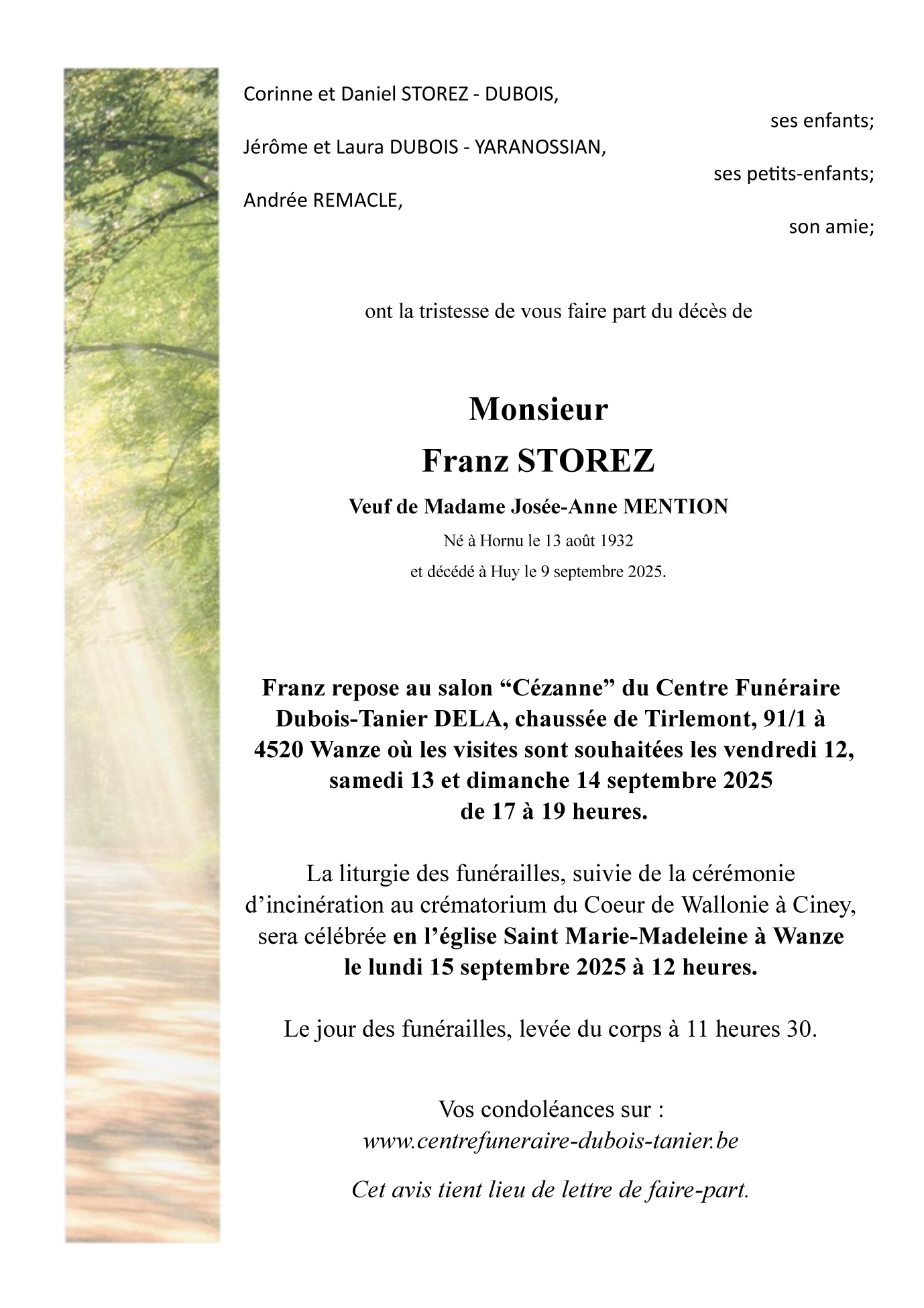 Fallecido en Huy (4500, Bélgica) el martes, 9 de septiembre de 2025 a la edad de 93 años
