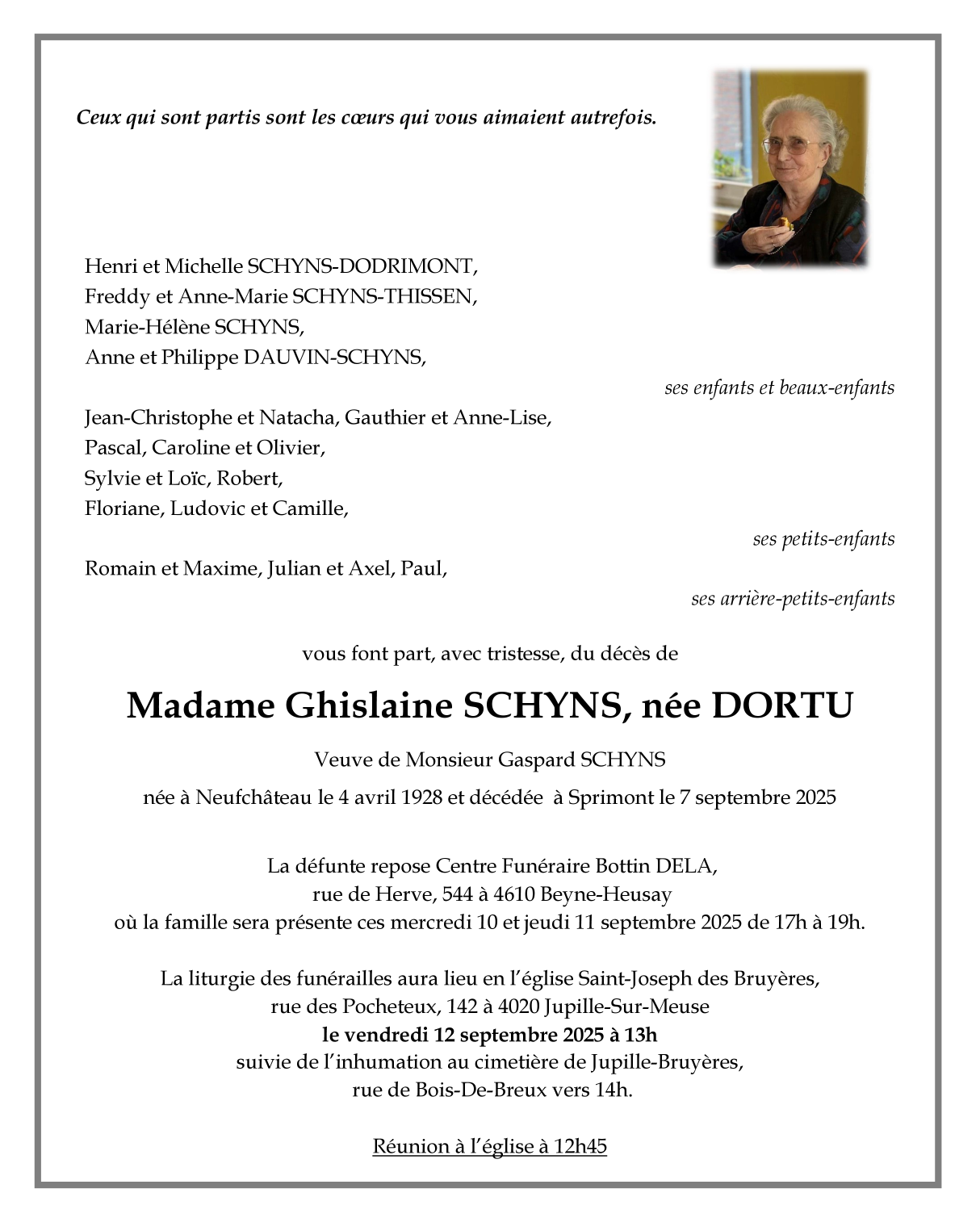 Fallecida en Sprimont (4140, Bélgica) el domingo, 7 de septiembre de 2025 a la edad de 97 años