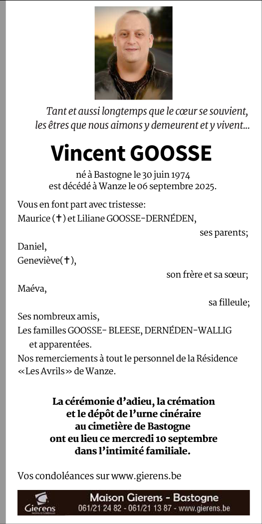 Fallecido en Wanze (4520, Bélgica) el sábado, 6 de septiembre de 2025 a la edad de 51 años