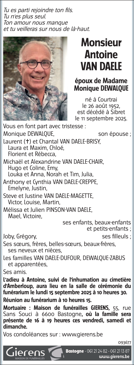 Fallecido en Vaux-sur-Sure (6640, Bélgica) el jueves, 11 de septiembre de 2025 a la edad de 73 años