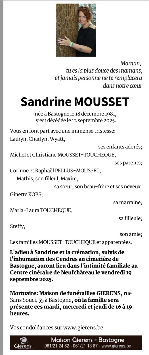 Fallecida en Bastogne (6600, Bélgica) el viernes, 12 de septiembre de 2025 a la edad de 43 años