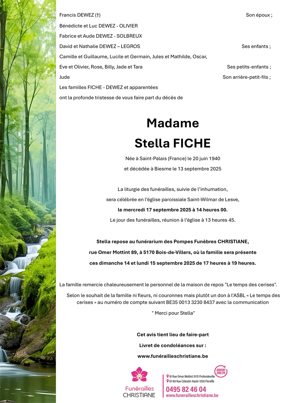 Fallecida en Mettet (5640, Bélgica) el sábado, 13 de septiembre de 2025 a la edad de 85 años
