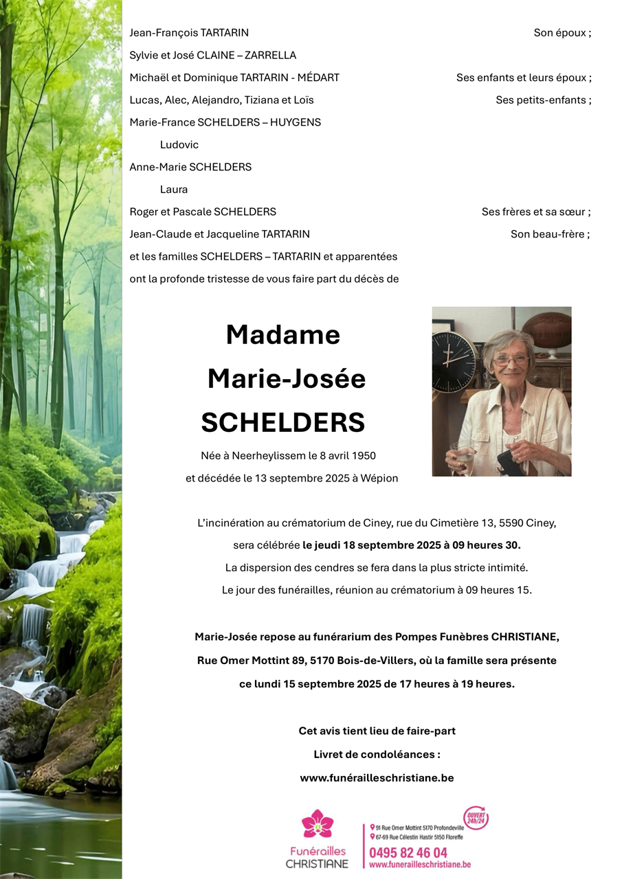 Madame Marie-Josée TARTARIN née SCHELDERS