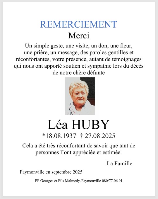 Fallecida en Sart-lez-Spa (4845, Bélgica) el miércoles, 27 de agosto de 2025 a la edad de 88 años