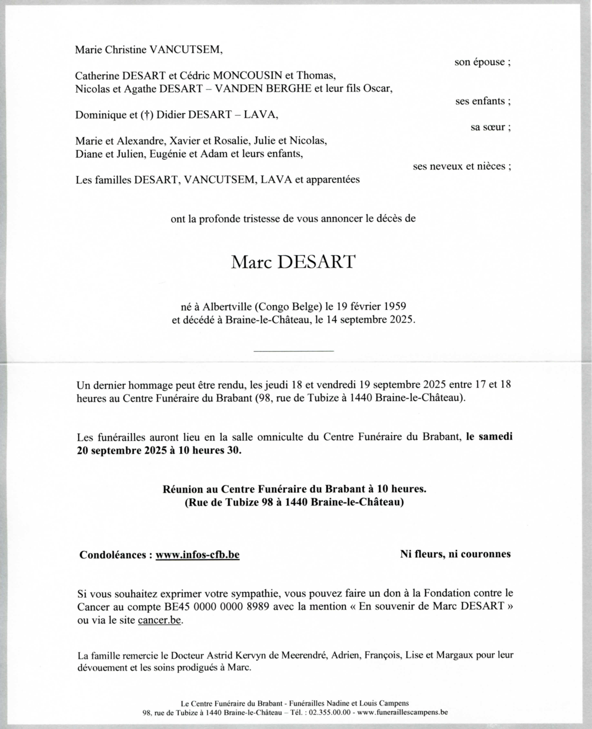 Fallecido en Braine-le-Château (1440, Bélgica) el domingo, 14 de septiembre de 2025 a la edad de 66 años
