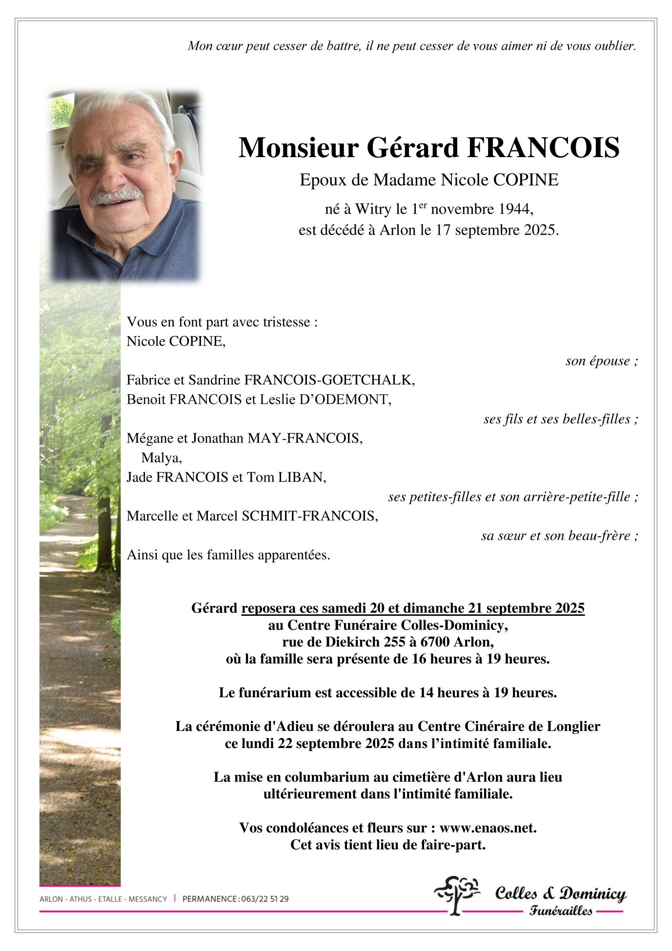 Fallecido en Arlon (6700, Bélgica) el miércoles, 17 de septiembre de 2025 a la edad de 80 años