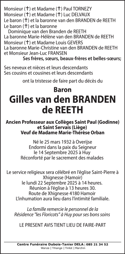 Fallecido en Huy (4500, Bélgica) el domingo, 14 de septiembre de 2025 a la edad de 93 años