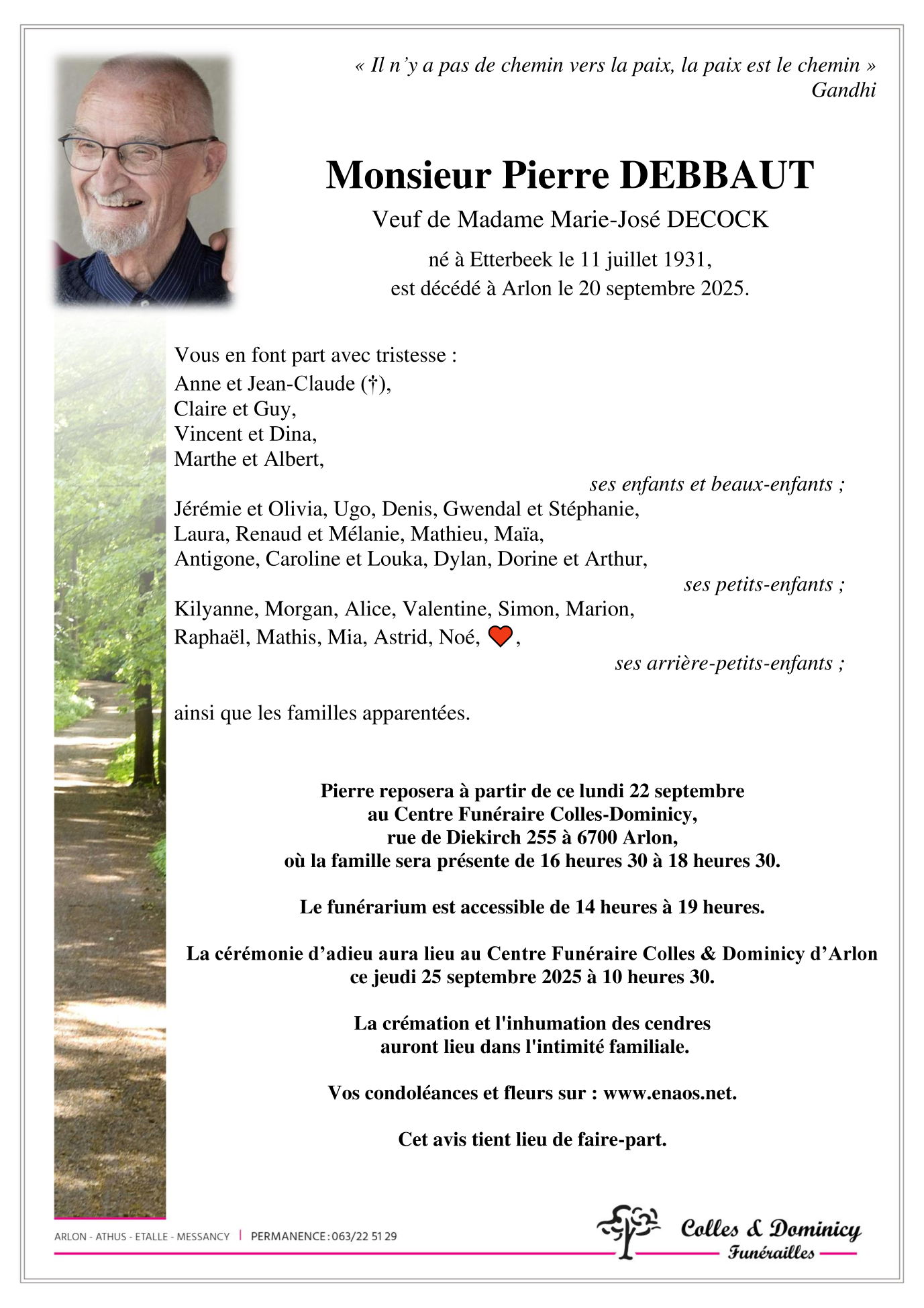 Fallecido en Arlon (6700, Bélgica) el sábado, 20 de septiembre de 2025 a la edad de 94 años