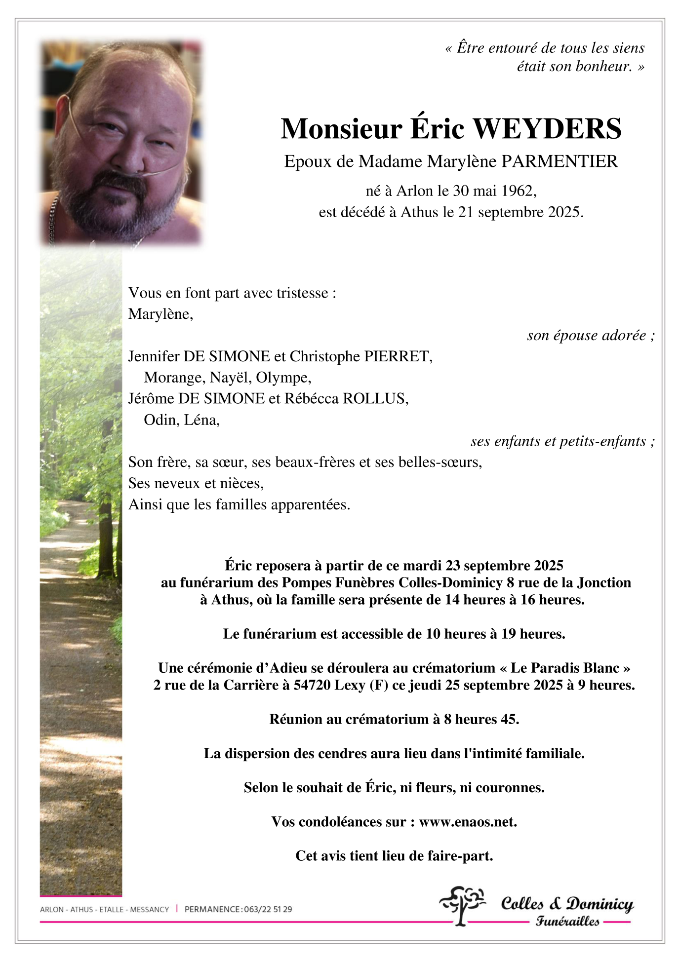 Fallecido en Athus (6791, Bélgica) el domingo, 21 de septiembre de 2025 a la edad de 63 años