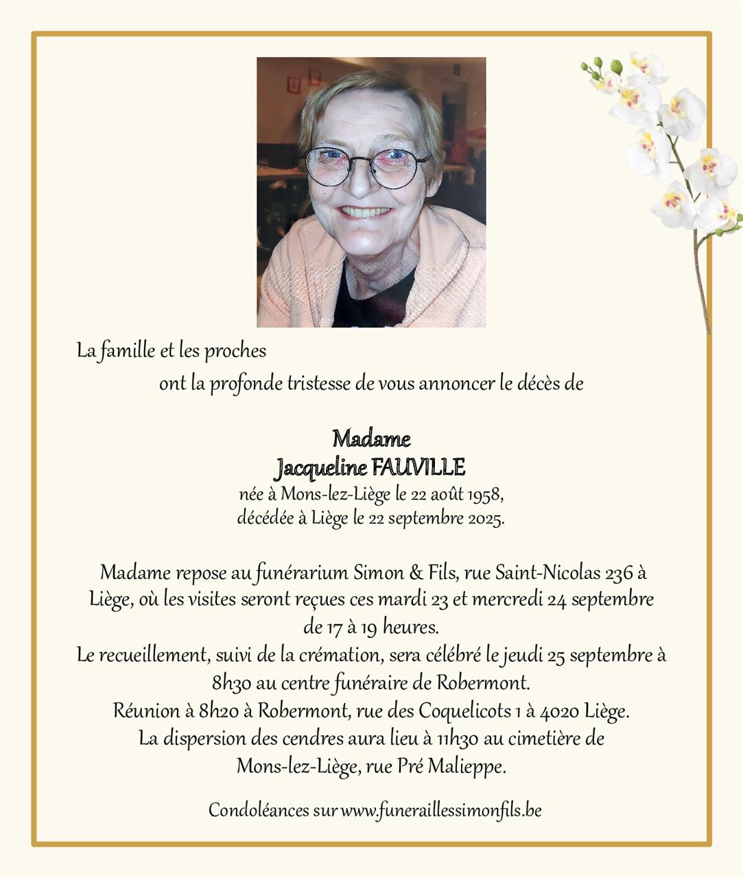Fallecida en Liège (4020, Bélgica) el lunes, 22 de septiembre de 2025 a la edad de 67 años