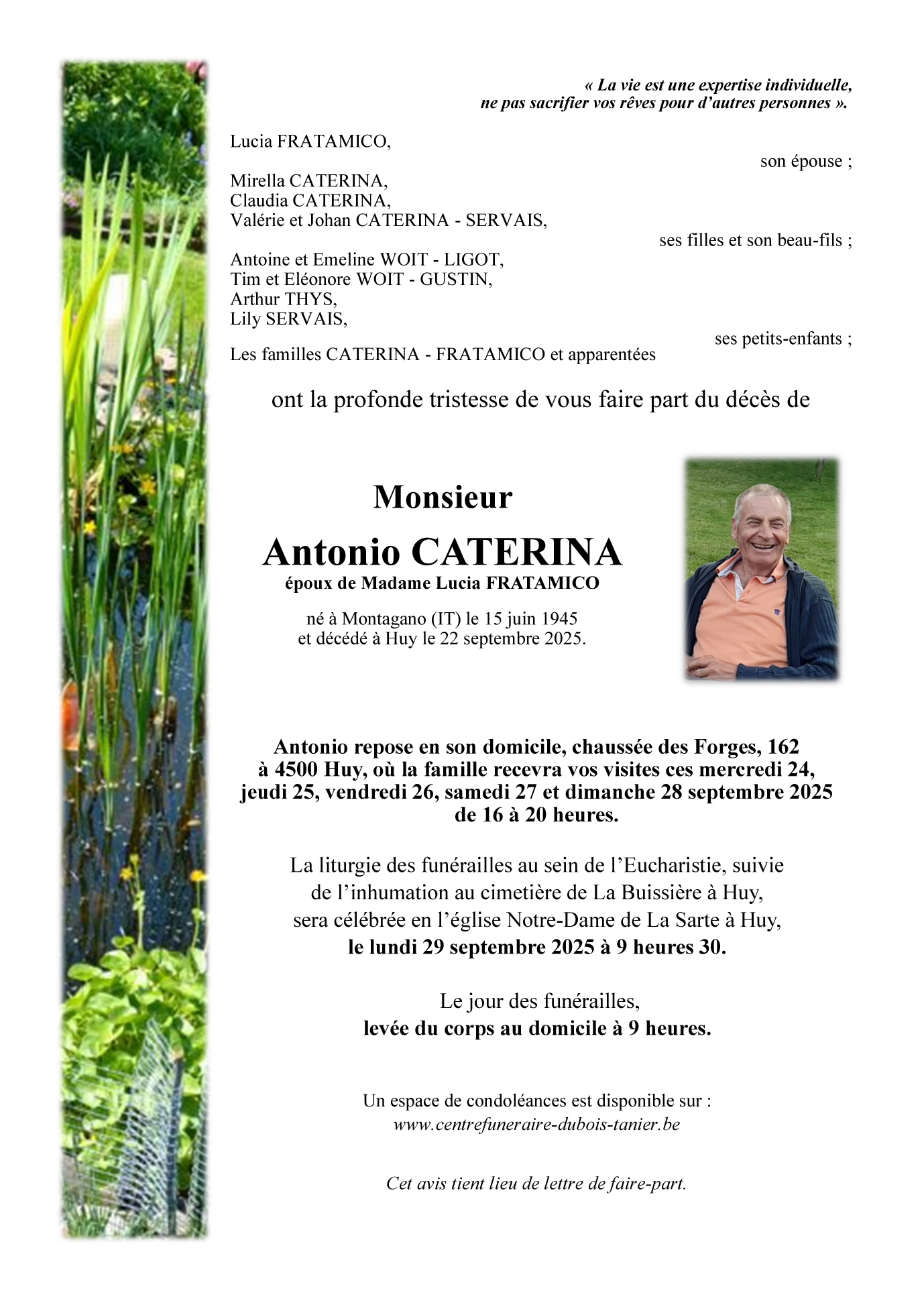 Fallecido en Huy (4500, Bélgica) el lunes, 22 de septiembre de 2025 a la edad de 80 años