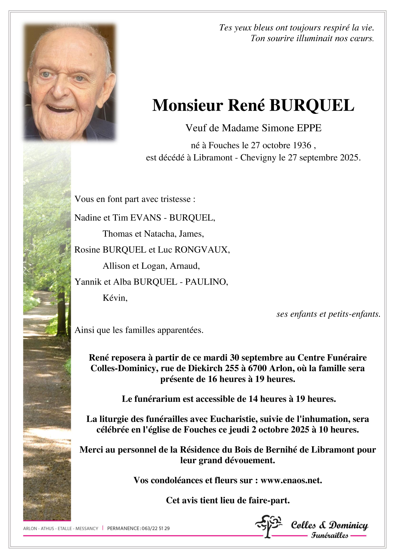 Fallecido en Libramont-Chevigny (6800, Bélgica) el sábado, 27 de septiembre de 2025 a la edad de 88 años