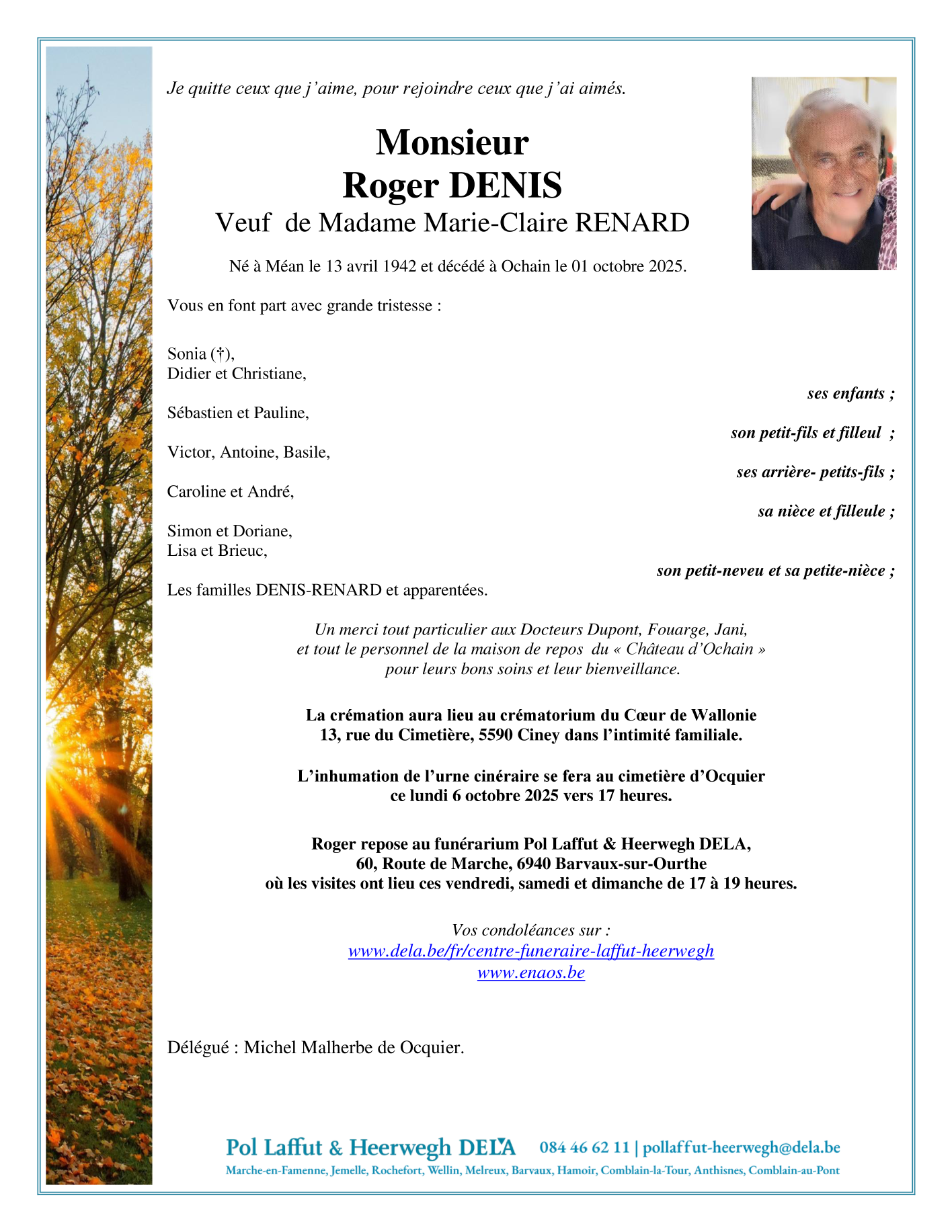 Fallecido en Ochain (4560, Bélgica) el miércoles, 1 de octubre de 2025 a la edad de 83 años
