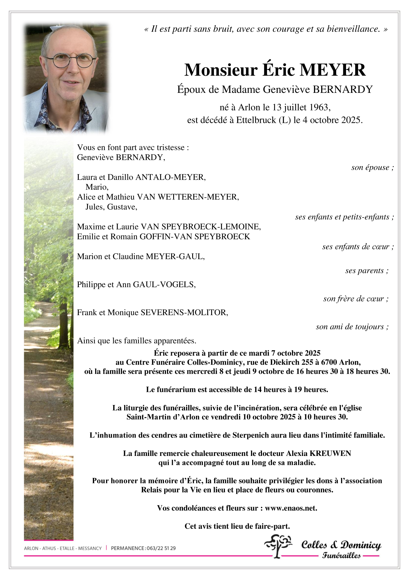 Fallecido en Ettelbruck/Salentiny  (9080, Luxemburgo) el sábado, 4 de octubre de 2025 a la edad de 62 años