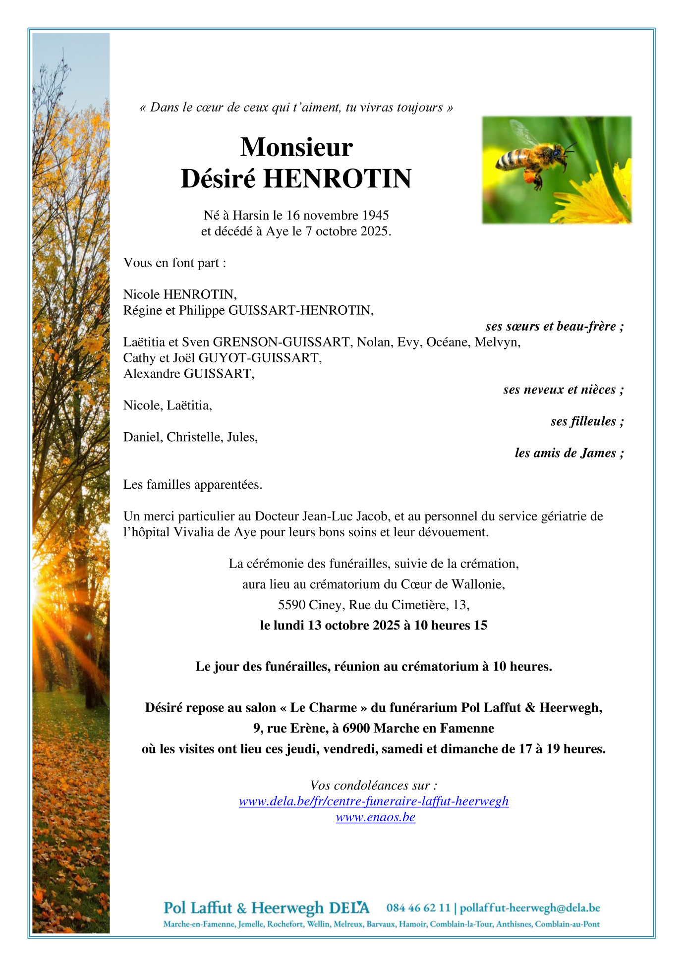 Fallecido en Aye (6900, Bélgica) el martes, 7 de octubre de 2025 a la edad de 79 años