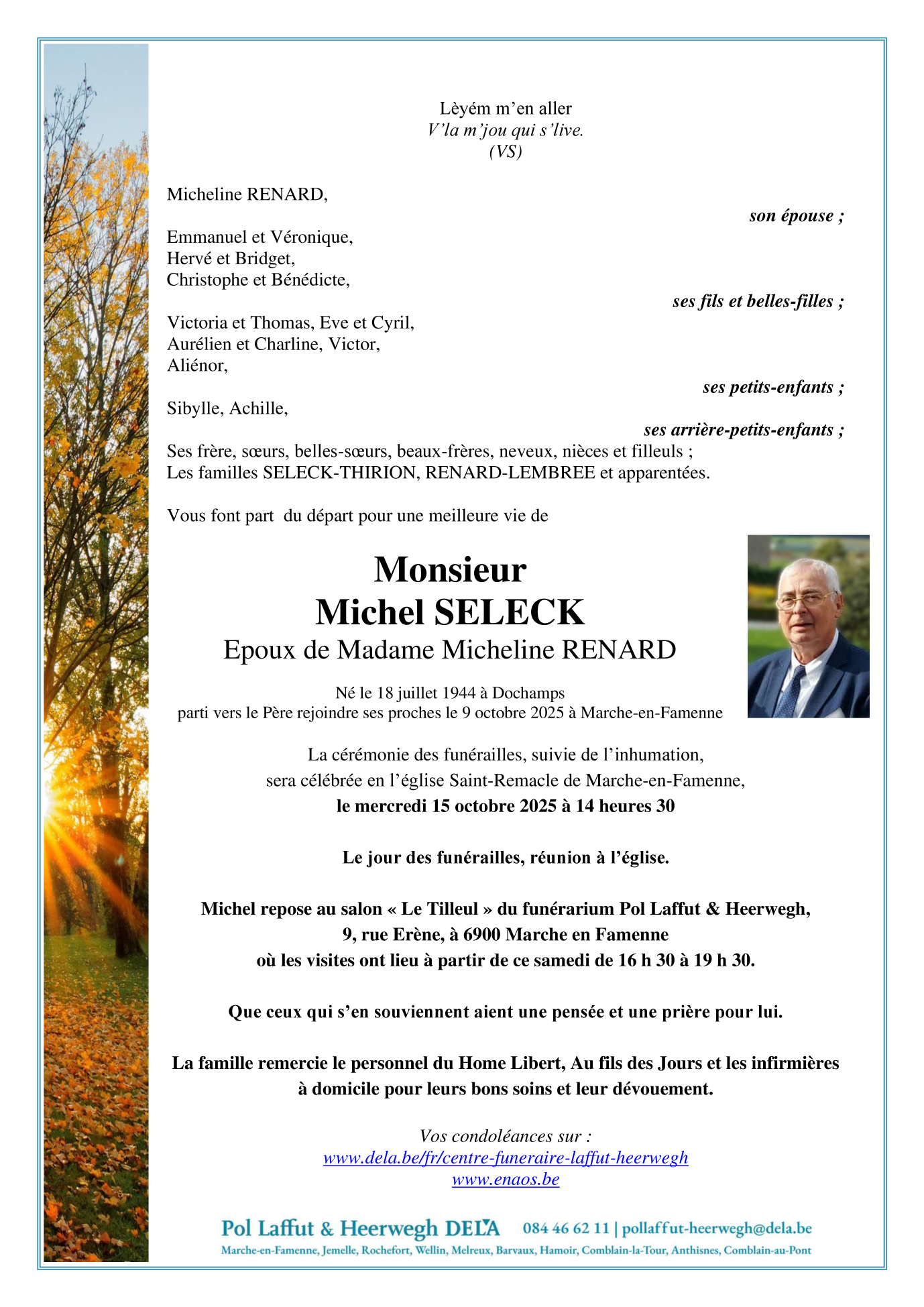 Fallecido en Marche-en-Famenne (6900, Bélgica) el jueves, 9 de octubre de 2025 a la edad de 81 años
