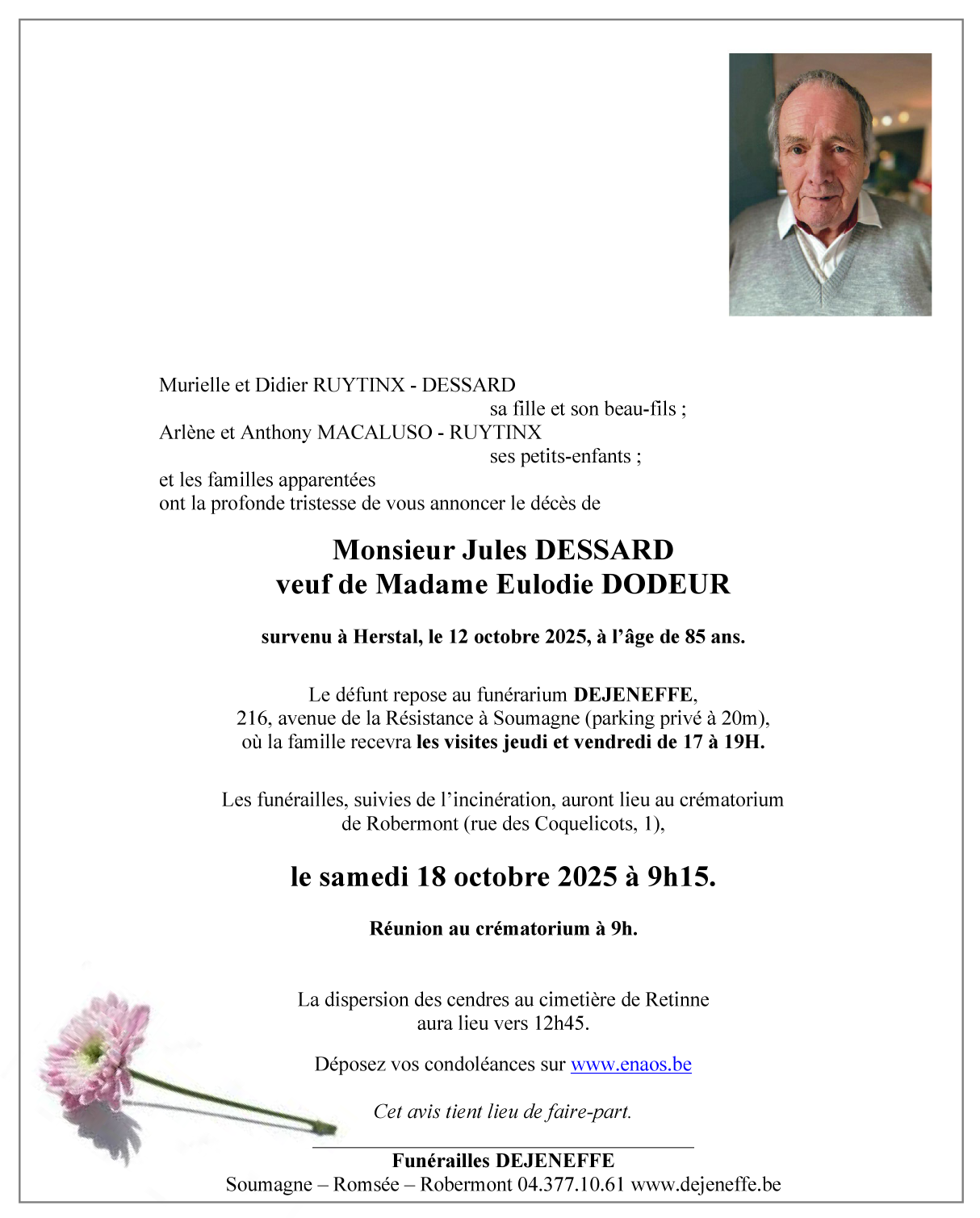 Fallecido en Herstal (4040, Bélgica) el domingo, 12 de octubre de 2025 a la edad de 85 años