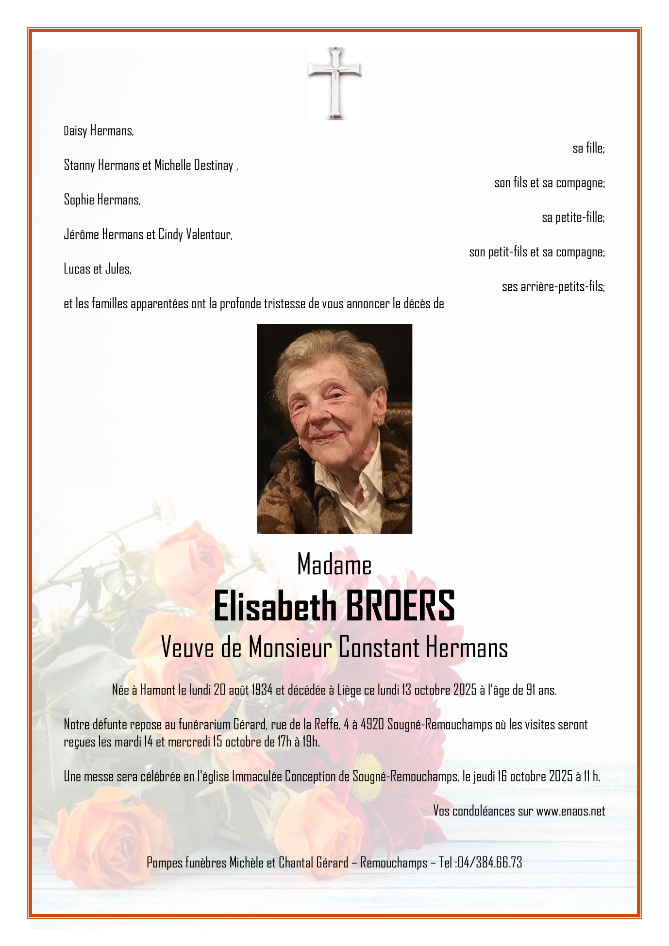 Fallecida en Liège (4000, Bélgica) el lunes, 13 de octubre de 2025 a la edad de 91 años