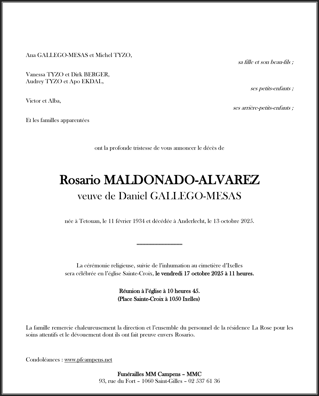 Widow of Monsieur Daniel GALLEGO-MESAS