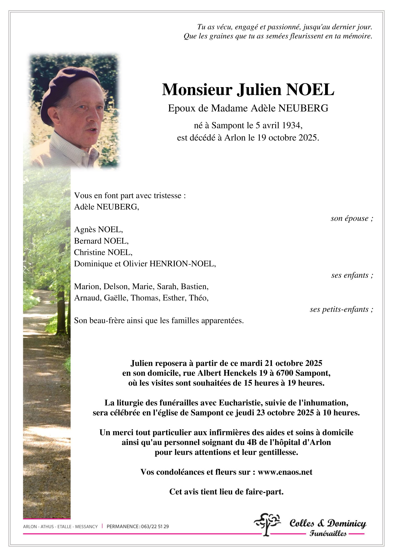 Fallecido en Arlon (6700, Bélgica) el domingo, 19 de octubre de 2025 a la edad de 91 años