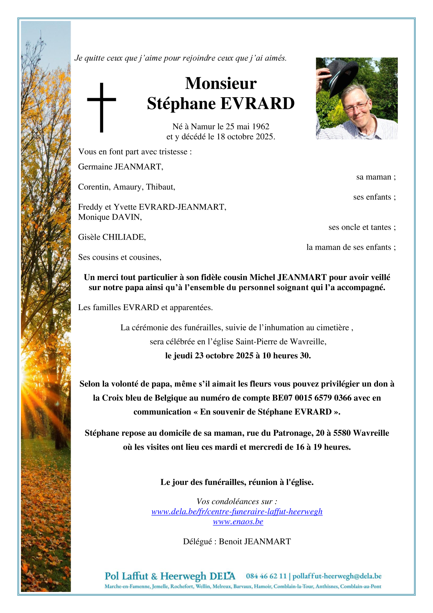 Fallecido en Namur (5000, Bélgica) el sábado, 18 de octubre de 2025 a la edad de 63 años